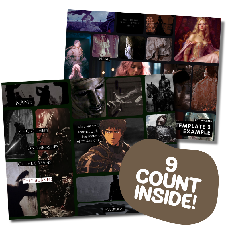 These mood boards work beautifully across all creative projects. From developing a novel’s aesthetic, curating brand tones, or crafting your dream space on a Pinterest board, they’re built for flow, balance, and visual harmony.